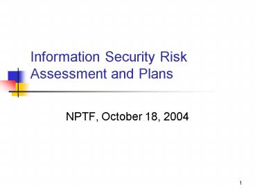 <Notice: Removed> Information Security Risk Assessment and Plans PowerPoint PPT Presentation