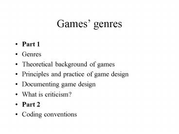 <Notice: Removed> Games genres PowerPoint PPT Presentation