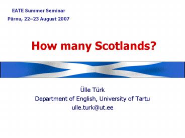 EATE Summer Seminar Pärnu, 2223 August 2007