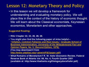 Title: Lesson 12: Monetary Theory and Policy