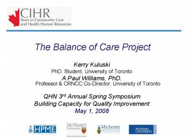 Title: The Balance of Care Project