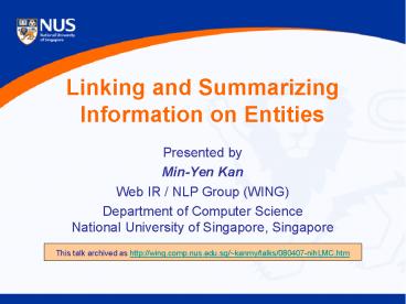 University of Singapore, Singapore - This talk archived as http//wing.comp.nus.edu.sg/