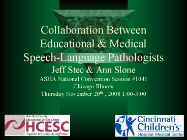 CCHMC SLPs. - SLPs from schools and hospitals were informally