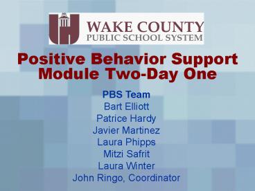 Title: Positive Behavior Support Module TwoDay One