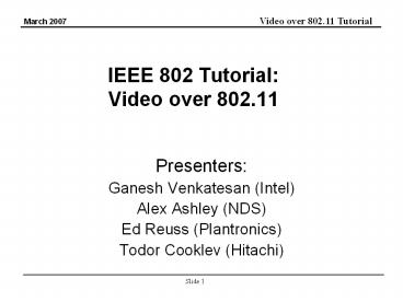 <Notice: Removed> IEEE 802 Tutorial: Video over 802.11 PowerPoint PPT Presentation