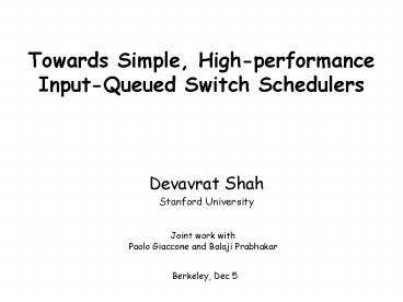 <Notice: Removed> Towards Simple, Highperformance InputQueued Switch Schedulers PowerPoint PPT Presentation