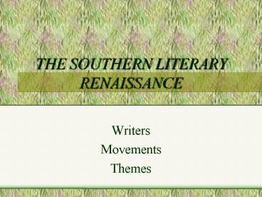 THE SOUTHERN LITERARY RENAISSANCE PowerPoint PPT Presentation