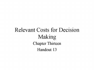 Title: Relevant Costs for Decision Making