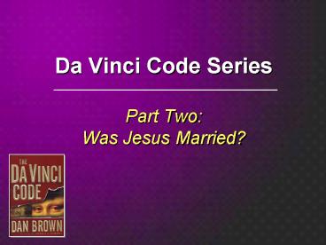 Da Vinci Code Series Part Two: Was Jesus Married PowerPoint PPT Presentation