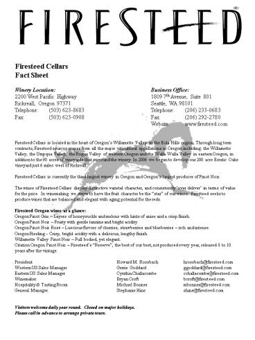 bcroft_at_firesteed.com Hospitality Tasting Room