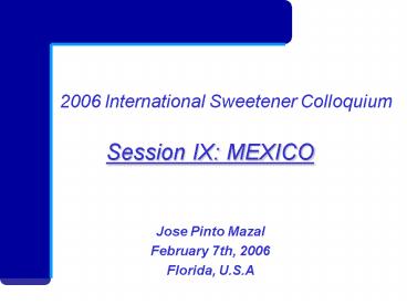 Title: 2006 International Sweetener Colloquium