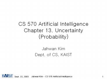 Title: CS 570 Artificial Intelligence Chapter 13. Uncertainty (Probability)