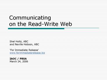 - Neville Hobson, ABC, and Shel Holtz, ABC