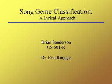 Song Genre Classification: A Lyrical Approach PowerPoint PPT Presentation