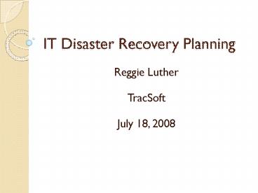 Title: IT Disaster Recovery Planning