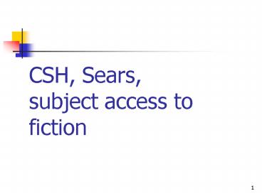 CSH, Sears, subject access to fiction PowerPoint PPT Presentation