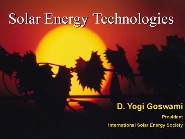 Solar Energy Technologies PowerPoint PPT Presentation