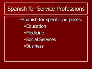 Spanish for Service Professions PowerPoint PPT Presentation
