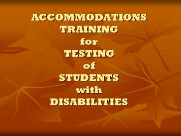 ACCOMMODATIONS TRAINING for TESTING of STUDENTS with DISABILITIES PowerPoint PPT Presentation