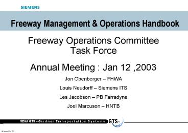 • Freeway Management Handbook Originally Developed