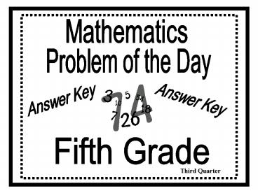 Fifth Grade Third Quarter Weeks 6-9 Objective 3.03