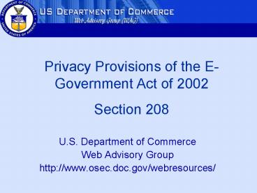 1Privacy Provisions of the E-Government Act of
