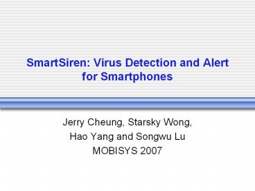 SmartSiren: Virus Detection and Alert for Smartphones PowerPoint PPT Presentation