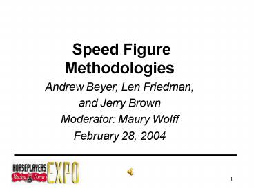 1 Speed Figure Methodologies Andrew Beyer, Len