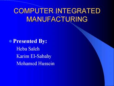 COMPUTER INTEGRATED MANUFACTURING PowerPoint PPT Presentation