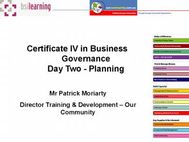 1Certificate IV in Business GovernanceDay Two -