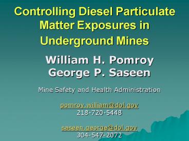 <Notice: Removed> Controlling Diesel Particulate Matter Exposures in Underground Mines PowerPoint PPT Presentation