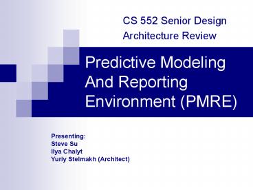 <Notice: Removed> Predictive Modeling And Reporting Environment (PMRE) PowerPoint PPT Presentation