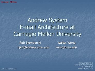 Title: Andrew System E-mail Architecture at Carnegie Mellon University