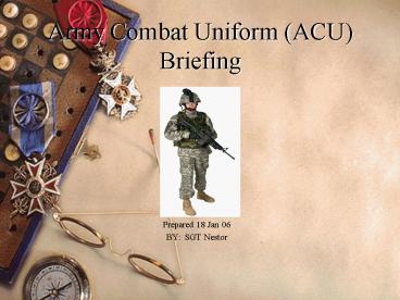 Title: Army Combat Uniform ACU Briefing