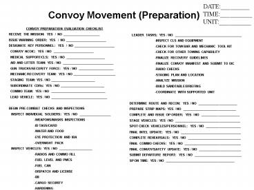 Title: CONVOY PREPARATION EVALUATION CHECKLIST