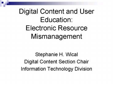 Digital Content and User Education: Electronic Resource Mismanagement PowerPoint PPT Presentation