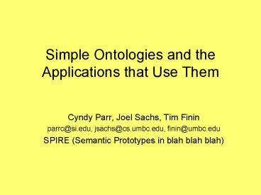 <Notice: Removed> Simple Ontologies and the Applications that Use Them PowerPoint PPT Presentation