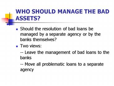 WHO SHOULD MANAGE THE BAD ASSETS PowerPoint PPT Presentation