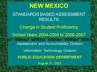 <Notice: Removed> NM Standards Based Assessment Changes PowerPoint PPT Presentation