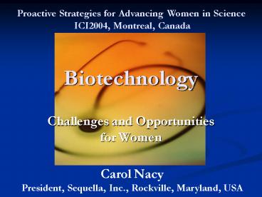 Carol Nacy President, Sequella, Inc., Rockville,