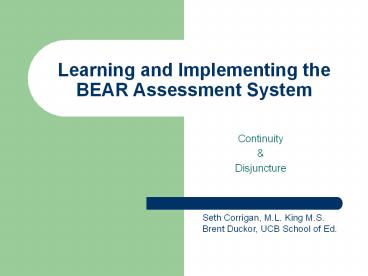 Seth Corrigan, M.L. King M.S. Brent Duckor, UCB