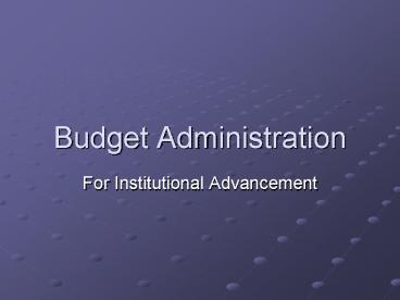 Budget Administration PowerPoint PPT Presentation