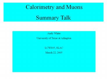 <Notice: Removed> Calorimetry and Muons PowerPoint PPT Presentation