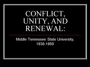 Title: CONFLICT, UNITY, AND RENEWAL: