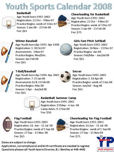 Youth Sports Calendar 2008