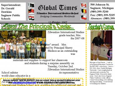to Zilwaukee classroom teachers and students.