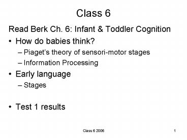 - Read Berk Ch. 6 Infant Toddler Cognition