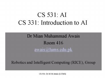 Title: CS 531: AI CS 331: Introduction to AI