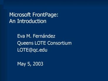 Microsoft FrontPage: An Introduction PowerPoint PPT Presentation