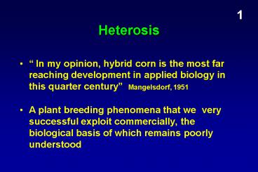 quarter century Mangelsdorf, 1951 - A plant breeding phenomena that we very